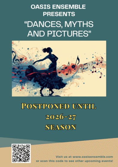 Our “Dances, Myths, and Pictures” concert scheduled for Saturday, February 7 has been postponed until next season due to an emergency.